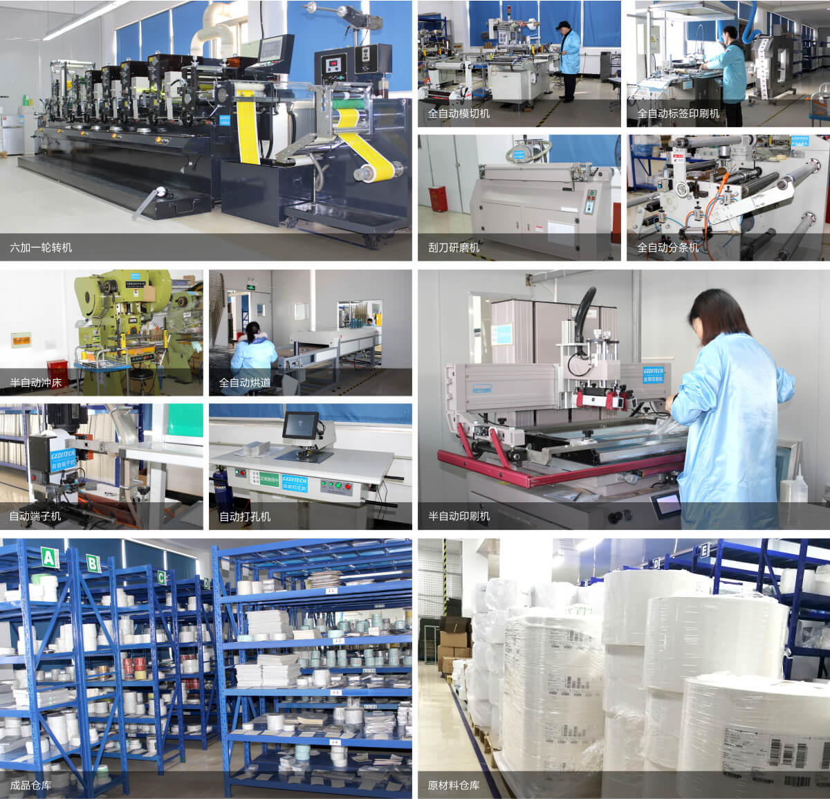 Shanghai Geditech Industries Co.ltd. was established intwo thousand and eightLocated in Qingpu Export Processing Park, with a superior geographical location, we have been committed to the research and production of labels, film panels, industrial die-cutting, and integrated printing for more than ten years. We are a comprehensive enterprise integrating production and sales, and our technical team hastwentyWith several years of rich industry experience, we are one of the earliest participants and developers in the field of adhesive products and film keyboards. We provide customers with comprehensive solutions for adhesive products and application materials, assisting them in improving product quality, production efficiency, and product performance. intwo thousand and fourteenYear by yearISO9000Quality System andTS16949The automotive quality management system has a complete quality management system and qualified supporting facilities.
